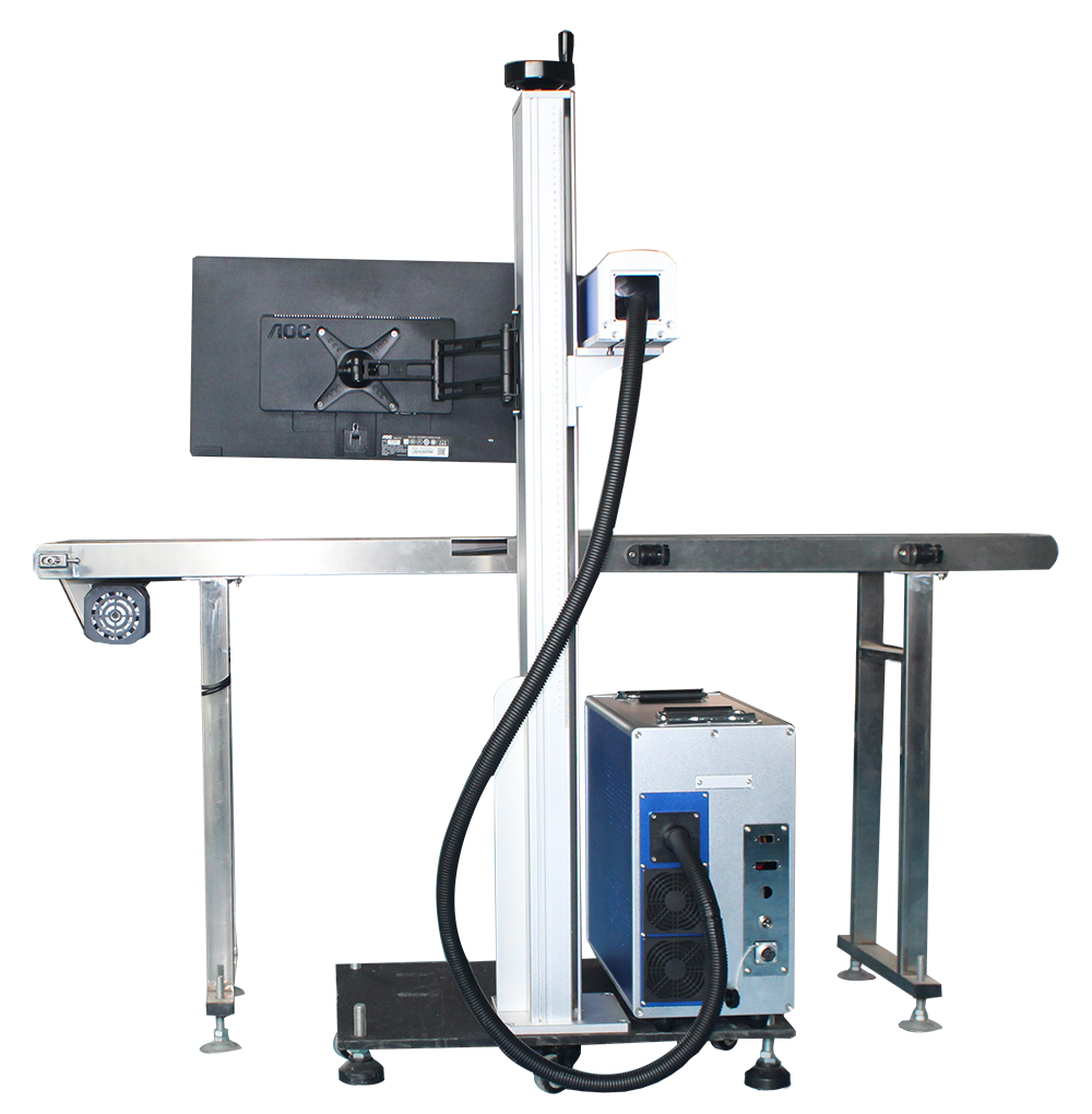 Flying laser marking machine and laser marking machine, laser online online code printer, laser to spurt the code machine, the packing of the products is my company for various enterprises industry to design online markers, and developing a non-standard automation high-tech products, can be in plastic, leather, wood and other nonmetallic material on marking, printing, this equipment can be equipped with a rotating countertops, rotating disk fixture and other functions for the general customers matching, can meet different application requirements; The flying laser marking machine also USES a special flight marking control system, can be equipped with an assembly line, the assembly line to achieve rapid laser marking, excellent performance, easy to operate.