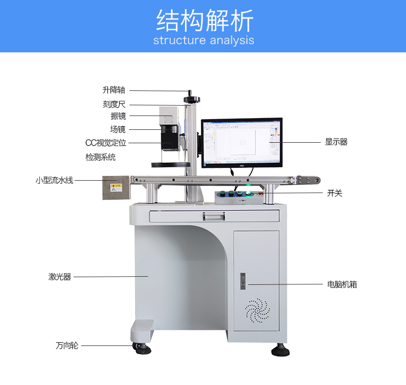 CCD視覺定位激光器針對批量不規(guī)則打標(biāo)夾具的設(shè)計與制造造成的進(jìn)給困難,定位不良,速度慢的問題,通過使用外部攝像機(jī)實時捕捉特征點來解決CCD攝像機(jī)打標(biāo)問題。 該系統(tǒng)可隨意進(jìn)料,準(zhǔn)確定位,打標(biāo),大大提高了打標(biāo)效率。